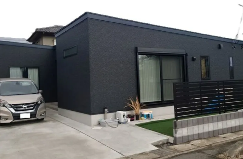 那珂市の新築建物(平屋・ローコスト&ハイクオリティー・認定長期優良住宅・耐震等級3・コンパクトハウス)は外構工事が終わったので外観の写真を撮影してきました。