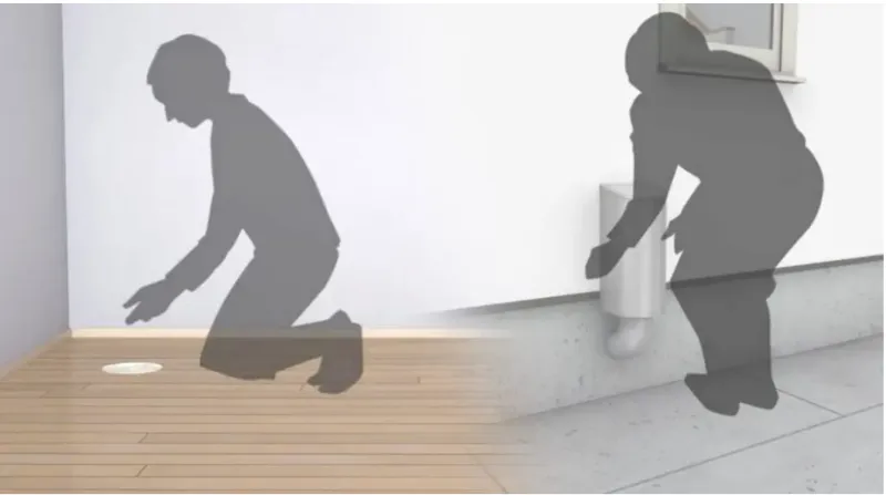 排気口はお部屋の床面に、給気口は屋外の手の届く場所に設置されているので、