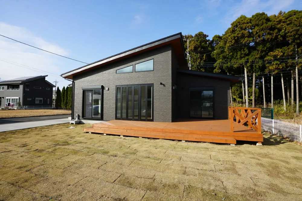 ウッドデッキ付きの広い庭と、余裕のある駐車スペースが魅力です!