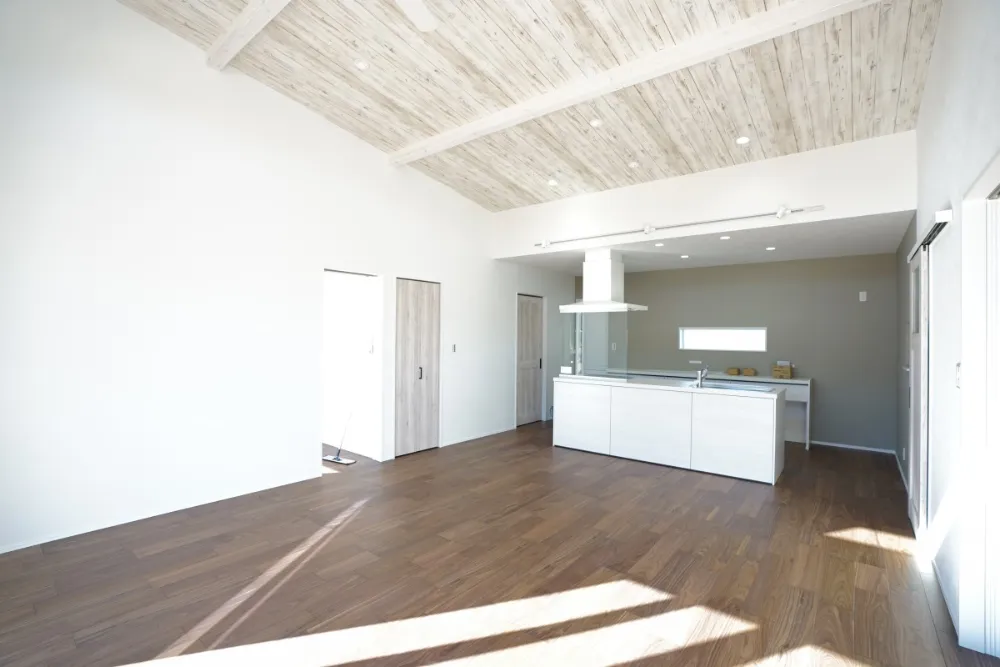 自然素材の風合いが引き立つ、落ち着きのある21.25帖のLDKです。